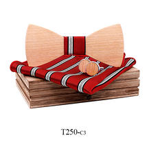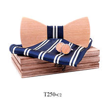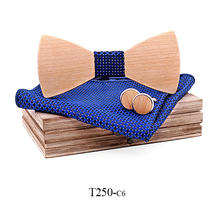 dřevěný motýlek, dřevěné manžetové knoflíčky, kapesníček, dárková krabička