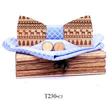dřevěný motýlek, dřevěné manžetové knoflíčky, kapesníček, dárková krabička