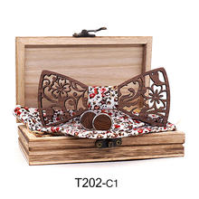 dřevěný motýlek , dřevěné manžetové knoflíčky, kapesníček, dárková krabička